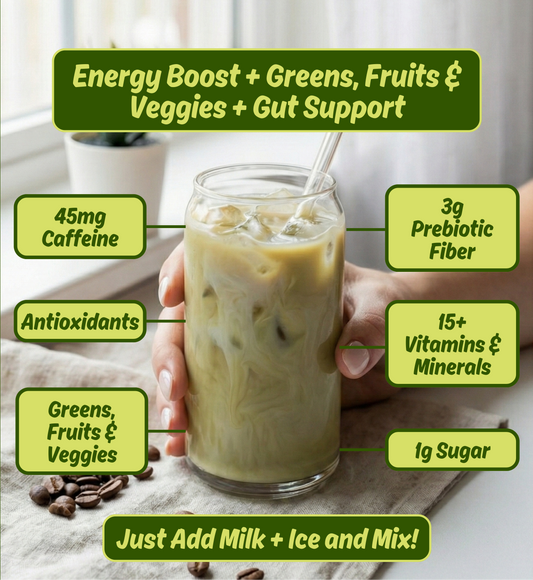 Prebiotic Fiber + Antioxidants + Vitamins A, B12, C, K, and more!